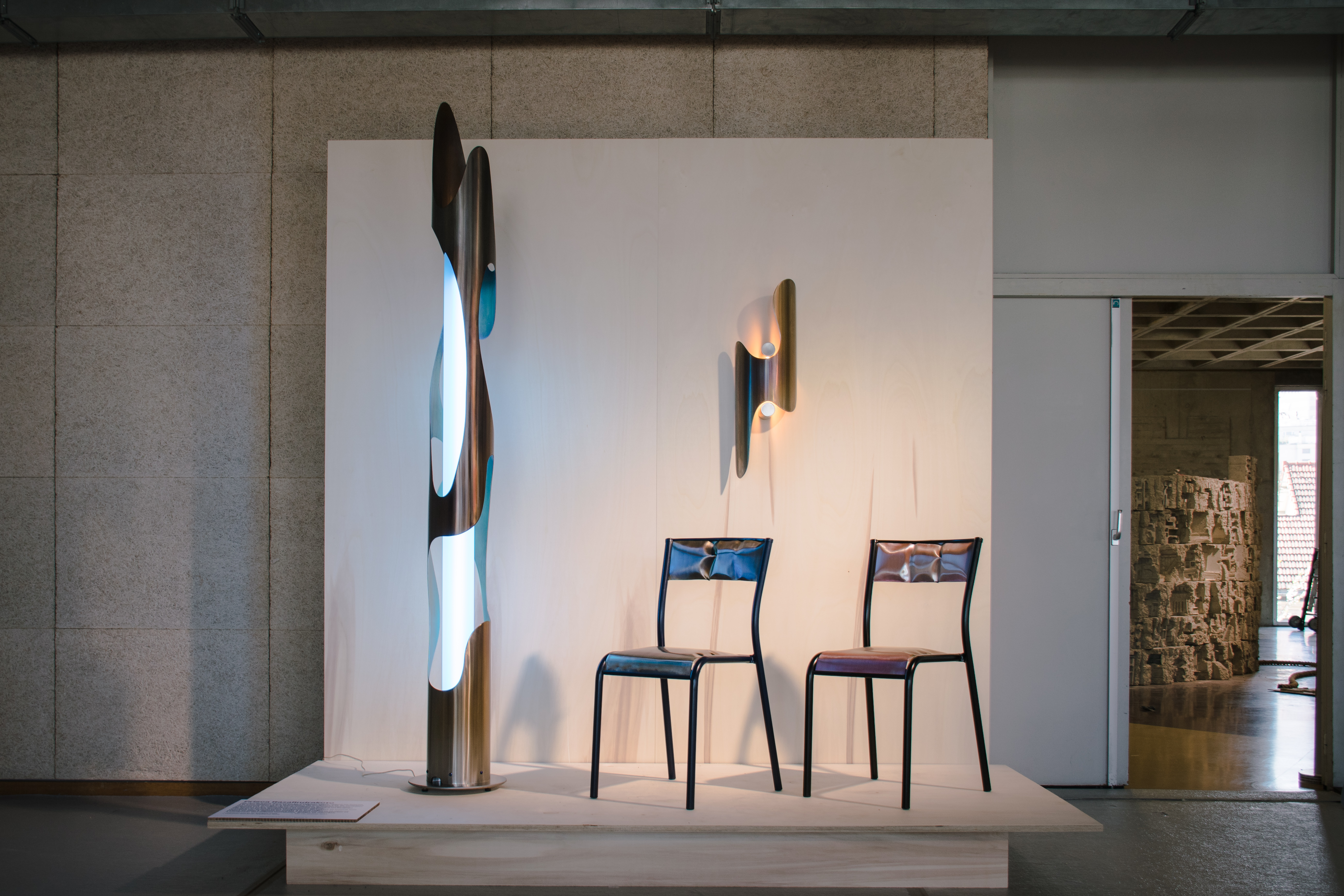 Galerie des Gobelins (FR). The Mobilier National initiated a unique experience by selecting pieces from its alienable collection and entrusted them to visual artists for an experimental and interventionist approach. The collection of "Aliénés" by the Mobilier National features Prisca's work, including the 510-Cu chairs, a copper re-interpretation of the school chair.