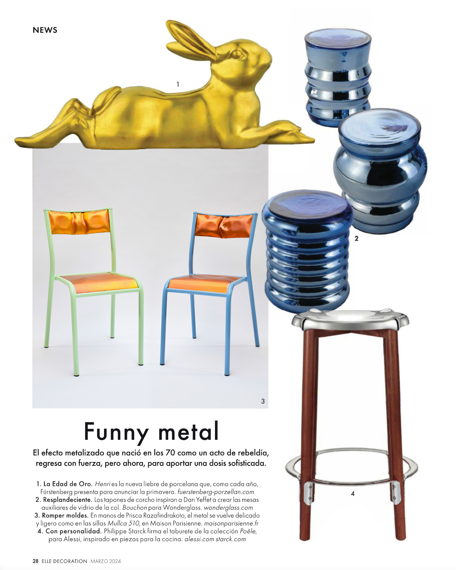 Elle Décoration Spain - Issue 222 - El diseño se hace grande, page 28 - Funny Metal. The 510-Cu chairs, the Solvay Trio, were featured in the latest Elle Décoration Spain - El diseño se hace grande.